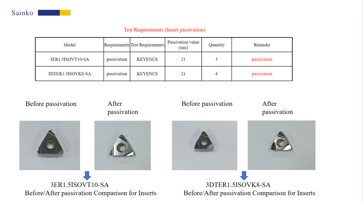 In response to customer needs, this time we conducted passivation process verification for two types of tool particles: 3ER1.5ISOVT10-SA and