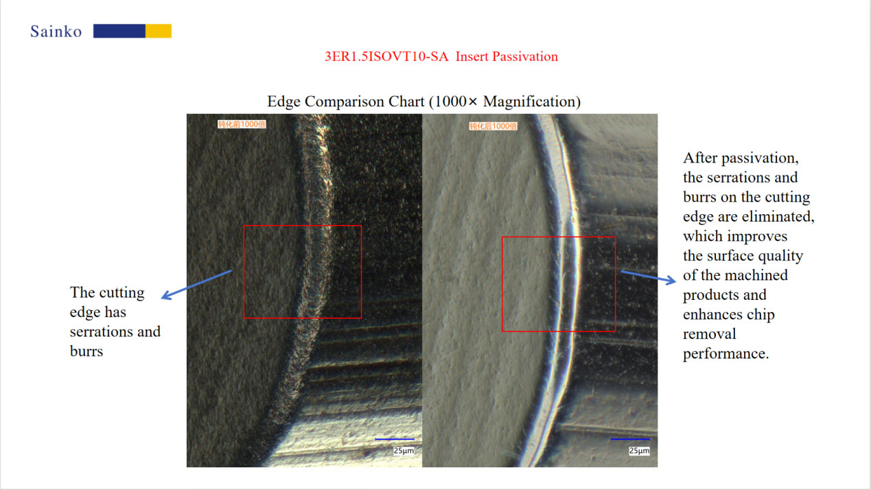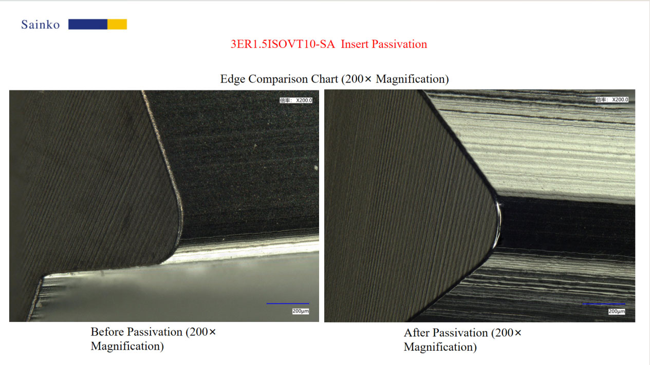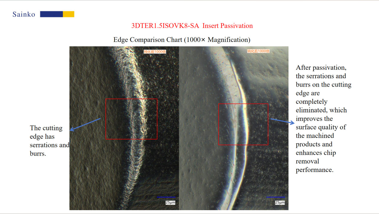 significant: both types of tool tips exhibited obvious defects such as serrations and burrs on the cutting edge before passivation. Specifically,
